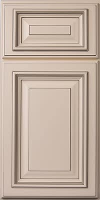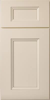- MDF, full overlay white cabinets